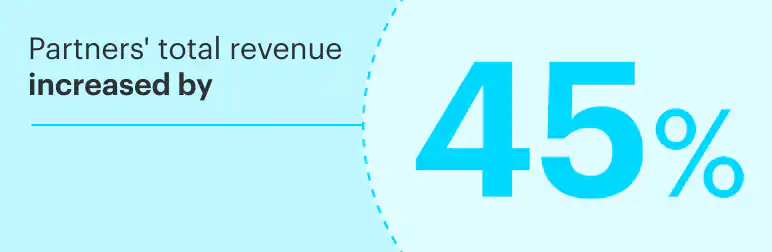 As a result, the partner saw a 70% increase in digital sales of workers’ comp policies.1 Total revenue went up 45%, significantly boosting the partner’s shared earnings from the program.1
