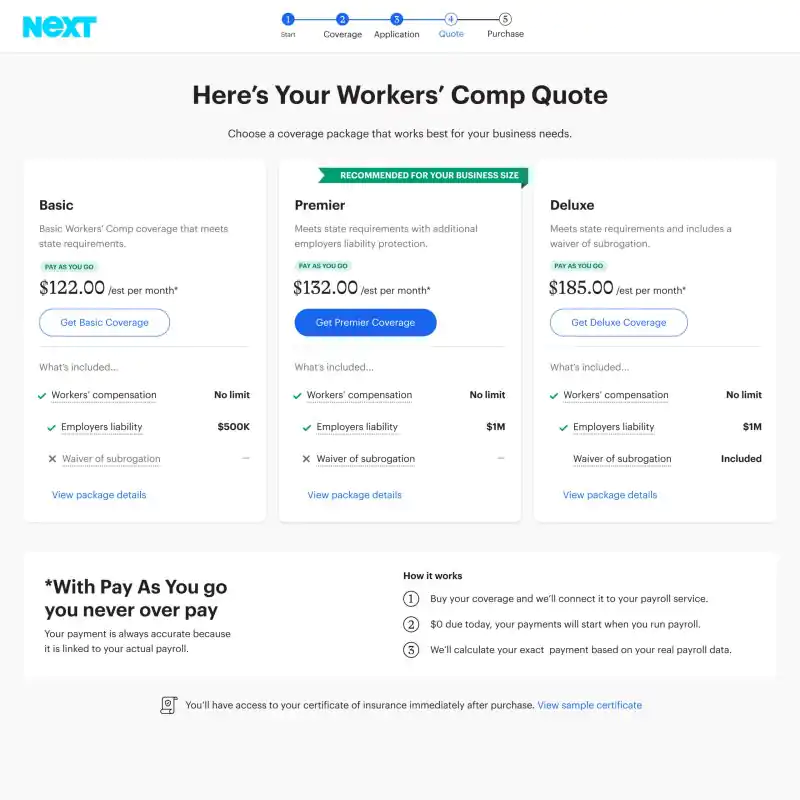 A multinational software company with a leading online payroll product for small businesses wanted to enable customers to purchase workers’ compensation insurance within their digital experience. They chose to partner with NEXT to make this possible.
