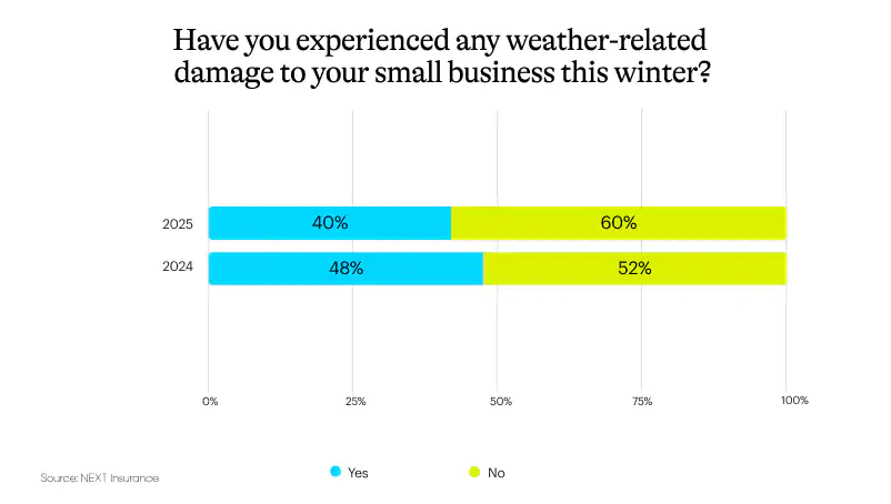 As of January 2025, 40% percent of restaurant owners report that they’ve suffered some kind of winter weather-related property damage to their business. This is a drop from 48% who reported property damage at the same time last year.