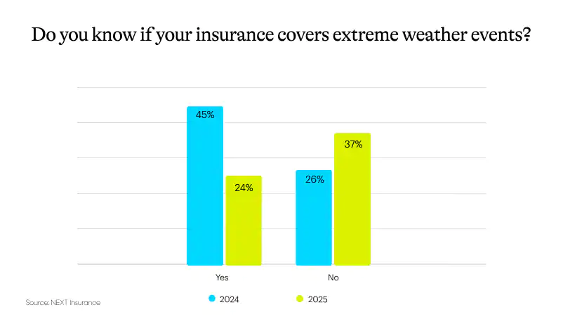 In 2025, 37% of respondents feel uncertain about the weather damage their policy covers — up from 26% of respondents last year.